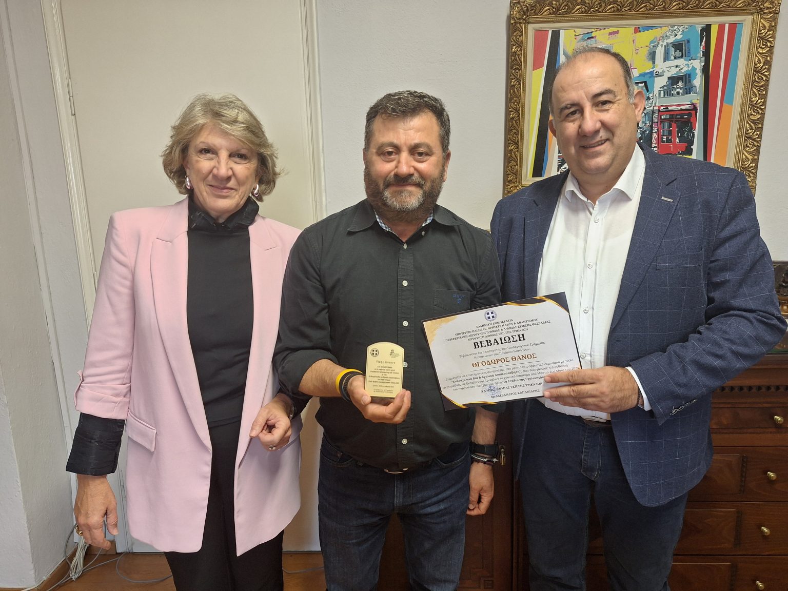 Ως ένδειξη ευγνωμοσύνης και αναγνώρισης της συνεργασίας και της ουσιαστικής συμβολής του, ο Διευθυντής Δευτεροβάθμιας Εκπαίδευσης κ. Αλέξανδρος Καπανιάρης απέδωσε στον Καθηγητή τιμητική πλακέτα και αναμνηστικό δίπλωμα, εκφράζοντας τις θερμές ευχαριστίες προς τον ίδιο καθώς και προς όλους/ες τους/τις εκπαιδευτικούς που συμμετείχαν στο πρόγραμμα, για την αφοσίωση και τον επαγγελματισμό τους.