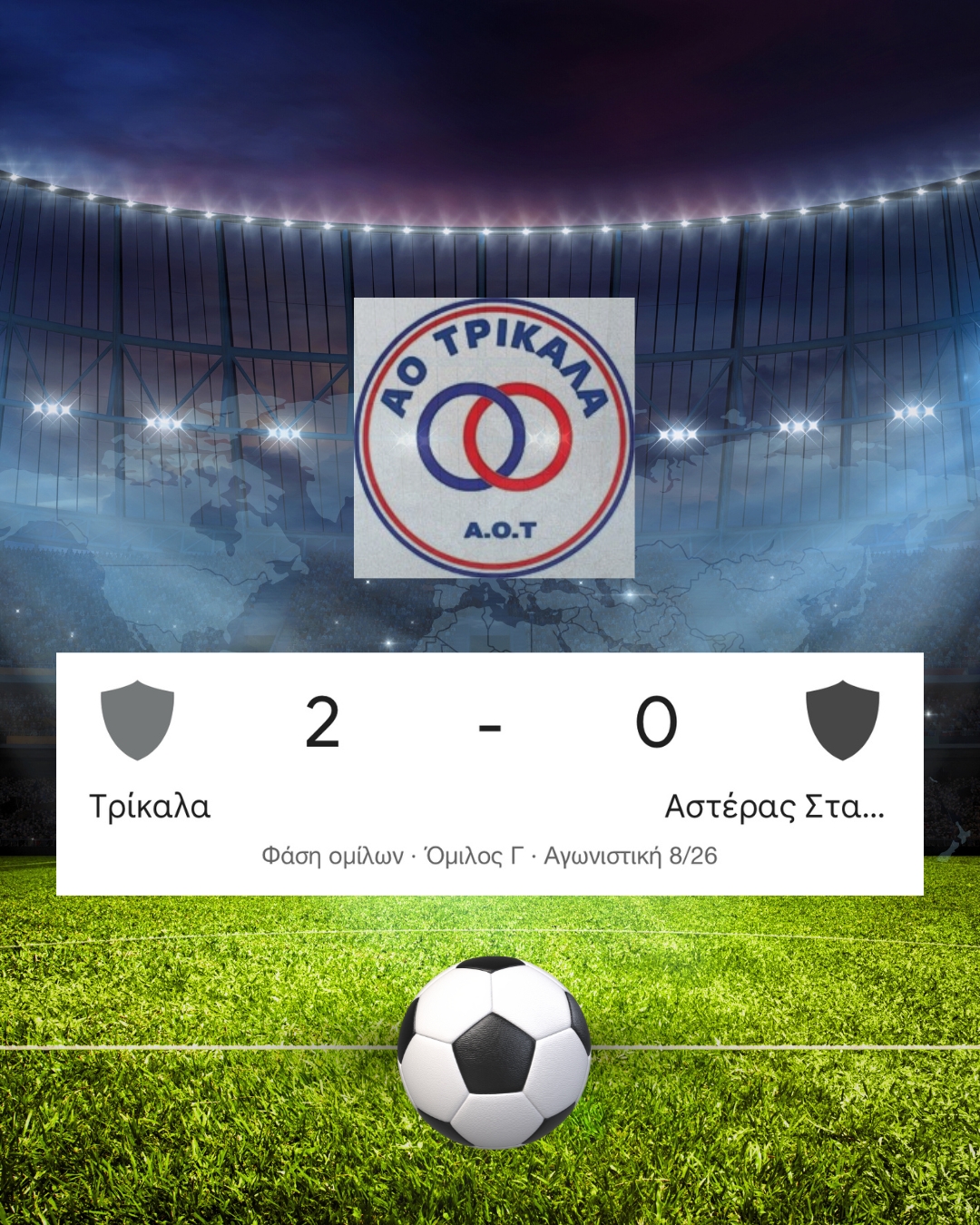 Άλλους τρεις βαθμούς πρόσθεσε ο ΑΟΤ καθώς έφτασε στην τρίτη του διαδοχική νίκη .Αυτή τη φορά επικράτησε με 2-0 του Αστέρα Σταυρού χάρη σε δύο γκολ που πέτυχε στο δεύτερο ημίχρονο του παιχνιδιού !Σκόρερ για την ομάδας μας ήτανε οι Σκόνδρας στο 66’ και Ναζίμ στο 85’ σκοράροντας αμφότεροι με κεφαλιά !
