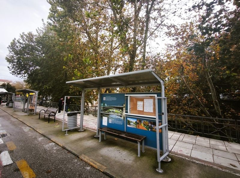 Τρεις στάσεις του Αστικού ΚΤΕΛ “ντύθηκαν” με προσεγμένες πληροφοριακές πινακίδες, που αποτυπώνουν ισάριθμα τοπόσημα της πόλης: Μουσείο Τσιτσάνη, Τζαμί, κεντρική πεζογέφυρα.