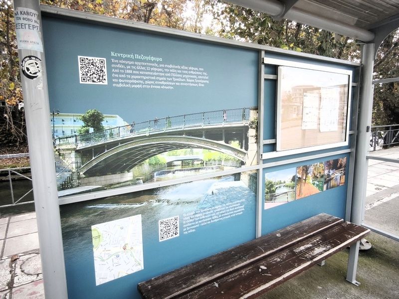 Με ορισμένα πληροφοριακά στοιχεία να αναγράφονται και με περισσότερα να εμφανίζονται στο κινητό μέσω qr code, οι πινακίδες τοποθετήθηκαν στις στάσεις του ΚΤΕΛ στην αρχή της οδού Τσιτσάνη, ένα από τα πλέον κεντρικά σημεία των Τρικάλων. Ετσι, με τη χρήση της τεχνολογίας, κάθε ενδιαφερόμενος/η μεταφέρεται στην ιστοσελίδα του Δήμου Τρικκαίων, όπου παρατίθενται στοιχεία για τα συγκεκριμένα αξιοθέατα, γνωρίζοντας καλύτερα τα Τρίκαλα και τα μνημεία τους.