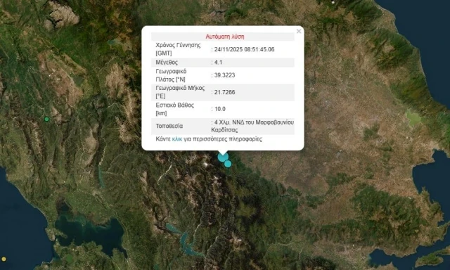 Σεισμός 4,1 Ρίχτερ στην Καρδίτσα