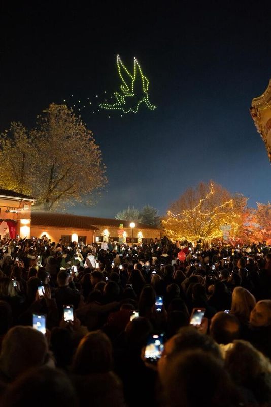 Οταν τα πάνω από 200 drones σχημάτισαν στον τρικαλινό ουρανό τον Πίτερ Παν και τον Αη Βασίλη, οι χιλιάδες παρευρισκόμενοι/ες στην τελετή έναρξης του 14ου Μύλου των Ξωτικών εισήλθαν στη μαγεία των Χριστουγέννων. Μαζί τους, οι δεκάδες χιλιάδες επισκέπτες/τριες που ήδη κατακλύζουν την πρωτεύουσα των Χριστουγέννων, καθώς τα Τρίκαλα προσφέρουν σε κάθε επισκέπτη την αγάπη και το χαμόγελο για την πιο μαγική γιορτή!
