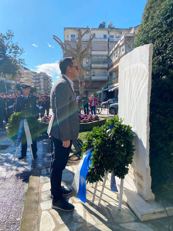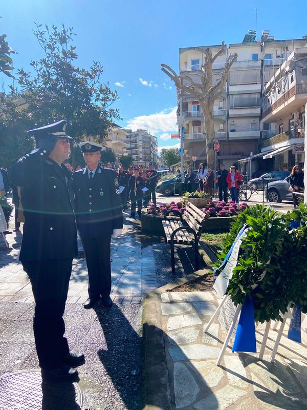 Τον Εθνικό Υμνο και το εμβατήριο “Επέσατε Θύματα” παιάνισε η Δημοτική Φιλαρμονική Τρικάλων.