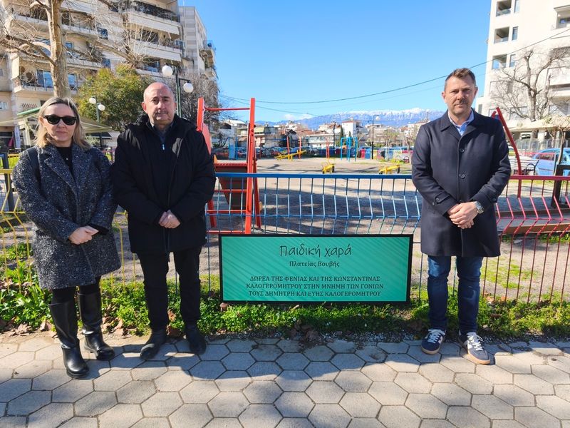 Οι κ. Φένια και Κωνσταντίνα Καλογερομήτρου δώρισαν την ανακαίνιση – συντήρηση της παιδικής χαράς στην πλατεία Βουβής, στη μνήμη των γονιών τους Δημήτρη και Εύης Καλογερομήτρου. Ο χώρος ανανεώθηκε, εξοπλισμός αντικαταστάθηκε, άλλα στοιχεία του εξοπλισμού συντηρήθηκαν και γενικά η στόχευση αφορούσε στο να καταστεί η παιδική χαρά πιο όμορφη, πιο λειτουργική, πιο ασφαλής για τα παιδιά.