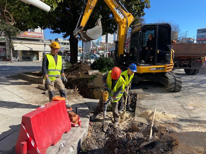 Το έργο στο κέντρο των Τρικάλων ολοκληρώνεται σταδιακά, καθώς στο συγκεκριμένο σημείο βρίσκονται και άλλα δίκτυα οργανισμών κοινής ωφέλειας.