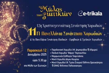 Ο Δήμος Τρικκαίων, η e-trikala και η οργανωτική επιτροπή του Μύλου των Ξωτικών φιλοξενούν και το 2025 πανελλήνιες χορωδιακές συναντήσεις.…