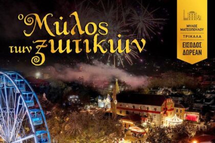 Με λαμπρότητα και χαρά, με χιλιάδες ευχές για όλον τον κόσμο, τους τρικαλινούς πολίτες, τους επισκέπτες στον Μύλο των Ξωτικών…