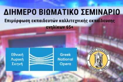 Εκπαιδευτικές & Κοινωνικές Δράσεις Εθνικής Λυρικής Σκηνής Διήμερο βιωματικό σεμινάριο επιμόρφωσης σε ζητήματα καλλιτεχνικής εκπαίδευσης ενηλίκων 65+ Τετάρτη 12 Νοεμβρίου 2025…
